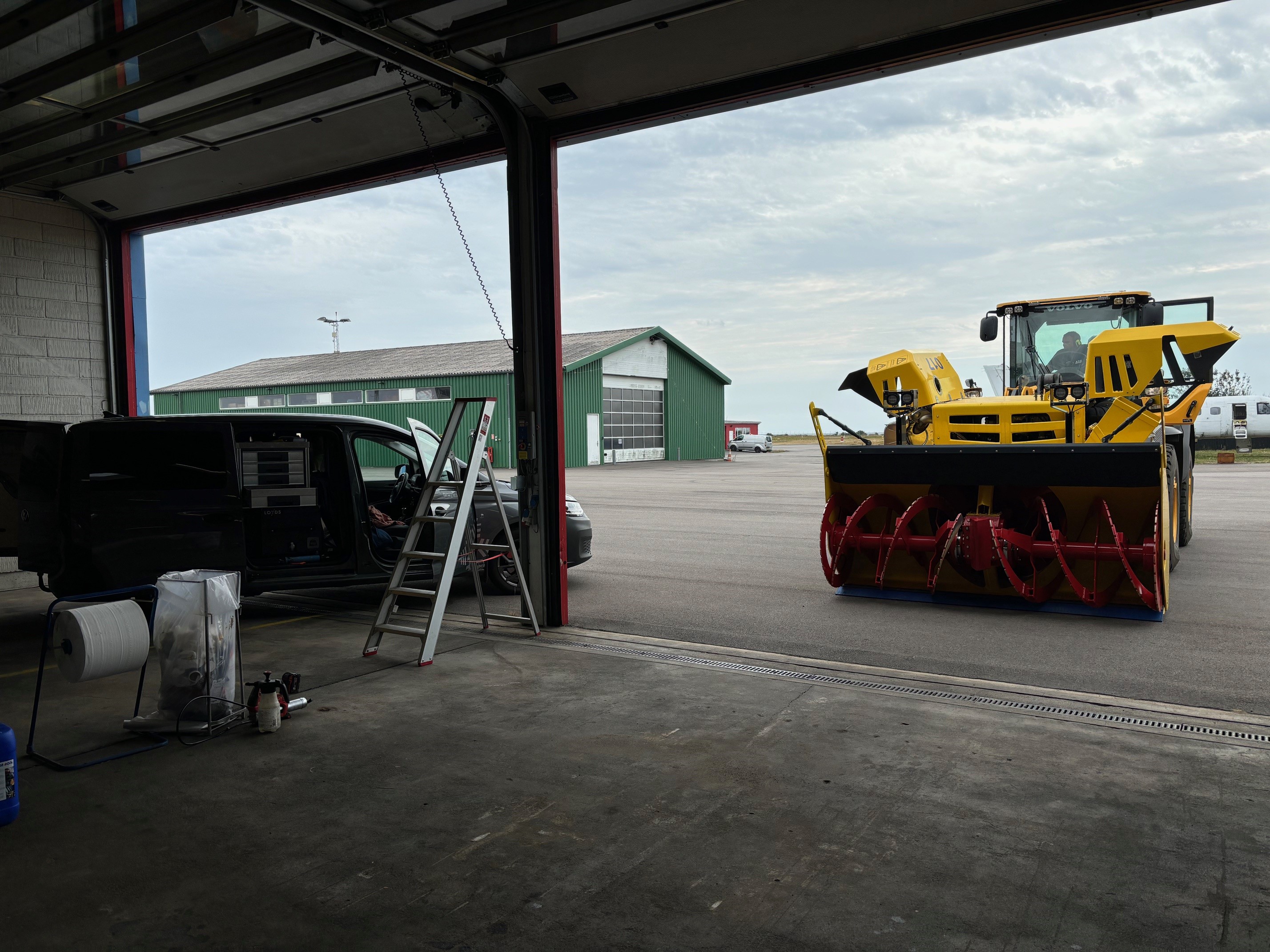 Selvom der fortsat er lidt tilbage af sommeren, er vi i lufthavnen allerede ved at forberede os til vinteren. Afisningsmateriel og snerydningskøretøjer er i gang med at blive serviceret og vedligeholdt.