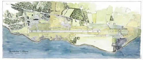 Lufthavnens referencepunkt: 55 03 48N 014 45 34E